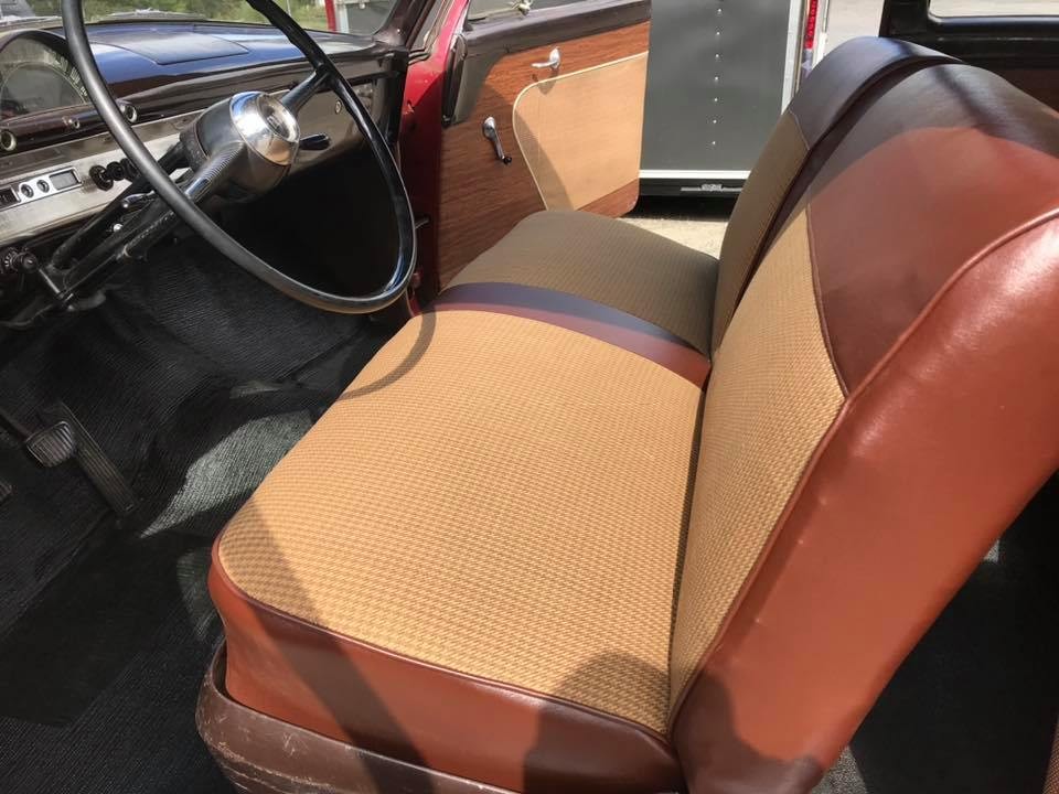 ahhh, reminds me of my first car, appears to be the same maroon color, I had a 52 Mainline 4 dr. $14.95, (in 1962) still have the invoice. it had a 6 cyl.,had a bad oil leak, threw a rod went to the junk yard, followed the guy around with a starter kit, until I found one I wanted, a 52 automatic with a “Flathead”, I stood there while it was idling and it was as if I was looking through a window from another room, no sound!, the quietest motor I have ever heard. They pulled the motor, put it in the trunk (without the lid) of my mothers 62 Comet, payed them $35 for it, pulled the 6 cyl. out, had to change from the torque coverter to a clutch, bolted it all together and dropped the whole thing in. I had to go find a radiator for the flathead,