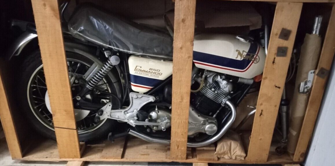 Over the last few years, the phenomenon of finding brand new vintage motorcycles still in the shipping crates seems to have picked up steams. It would seem like the sort of thing that should happen once a decade but it’s now happening multiple times per year where a motorcycle shop uncovers a brand new bike that’s never been unpacked. The latest in this line of discoveries is a 1975 Norton Commando 850 listed here on eBay with an opening bid of $50,000 and no takers yet.