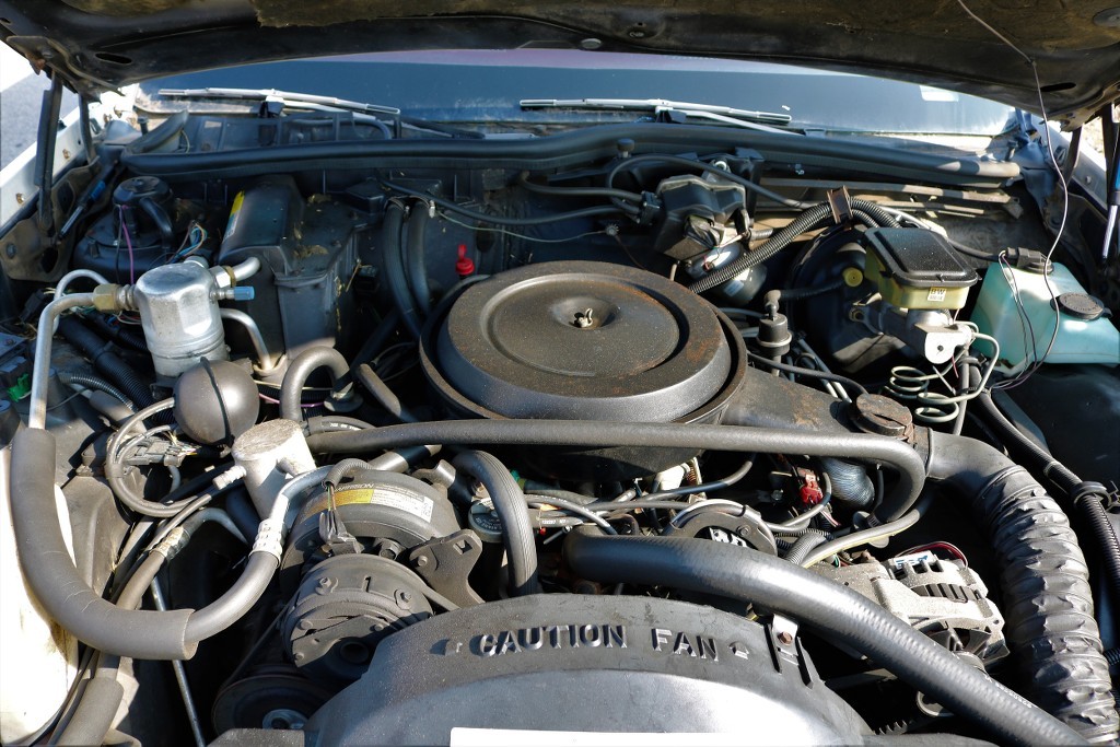 The engine is a 5.0 liter V-8 which may be a little weak in motivating this 5,602-pound vehicle from zero to normal speed. The hearse has only 34,825 miles. The selling company says that the car runs excellent.