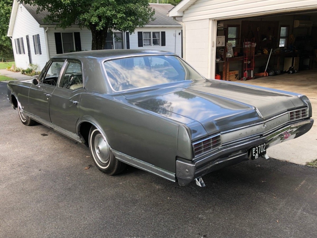 Had a ’65 Dynamic 88 way back in HS. The 425 is indeed quite an engine. Mine was the “economy” 2-barrel and it would sure move that barge along. Nothing quite like that Olds big block burbly sound.
