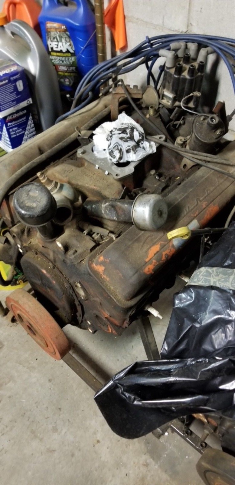 Its got straight plug camel hump heads which are probably 1.94s, I have a set of these from a 327 and were a great set of heads, motor too! Who cares what the factory advertised numbers were.