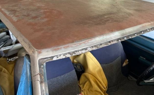 A bad vinyl roof created rust issues (we guess), bad enough to warrant fitting a new hardtop, which was done. That didn’t cause any damage to the trunk or frame, and the rest of the body may be okay, though the glass needs to be reinstalled after the roof replacement. Some extra parts come with the deal, though we don’t know what that assortment may include.