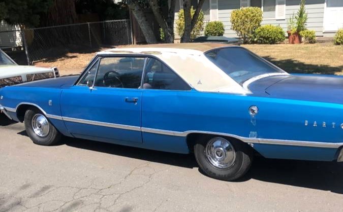The seller’s photos aren’t that good, so we can’t tell much about the interior. We see a Walmart-grade cover over the driver’s bucket seat, suggesting the upholstery is not up to snuff. New two-tone white over blue paint will be needed, and this car is one of 10,900 produced in 1968 (another 24,100 came with the 318). Would you restore a Slant-Six or go the restomod route?