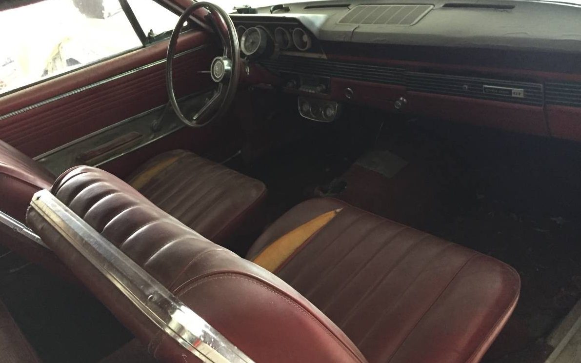 As for the condition of the car, recall the “needs restoration” comment from above. The images do not present a comprehensive view so it’s hard to say what’s good, bad or indifferent. The styling is reminiscent of the ’66 Ford Fairlane, the over/under headlights are an unmistakable clue. The body, what can be spied, seems straight enough, there is no obvious rot or crash damage but it’s really hard to tell for sure. There are lots of surface scrapes on what appears to be a faded finish, but nothing substantially wrong with the exterior.