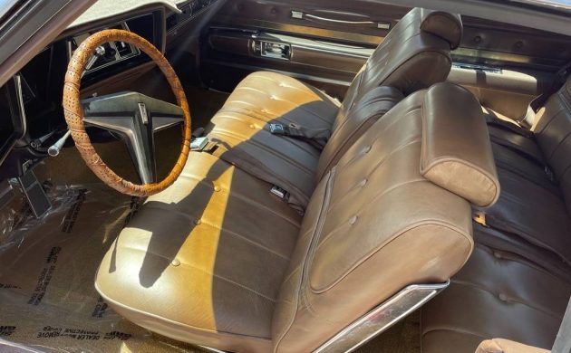 Powering this rig is a 350 gross HP, 455 CI V8 engine connected to a Turbo-Hydramatic 425 combination transmission and differential assembly (technically, I’m told, not a transaxle), which gives this car its pull as opposed to a push. The power output is notable as this is the first year GM reduced compression ratios on all of their engines (8.5:1 in this case) to comply with the newly passed Clean Air Act of 1970. It’s only a 25 HP reduction over the ’70 model, which utilized a 10.25:1 squeeze. The seller neglects to describe running and driving attributes, but this one gets points for its exceptionally clean engine room.