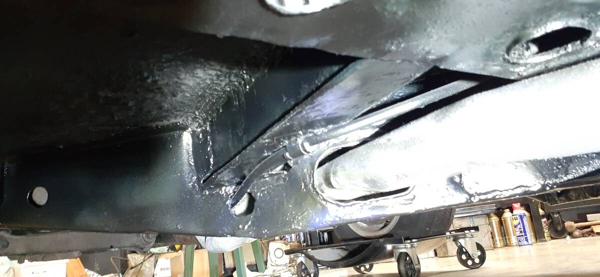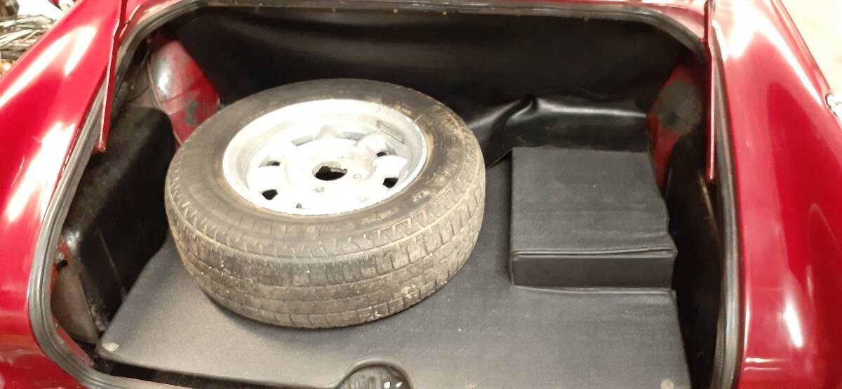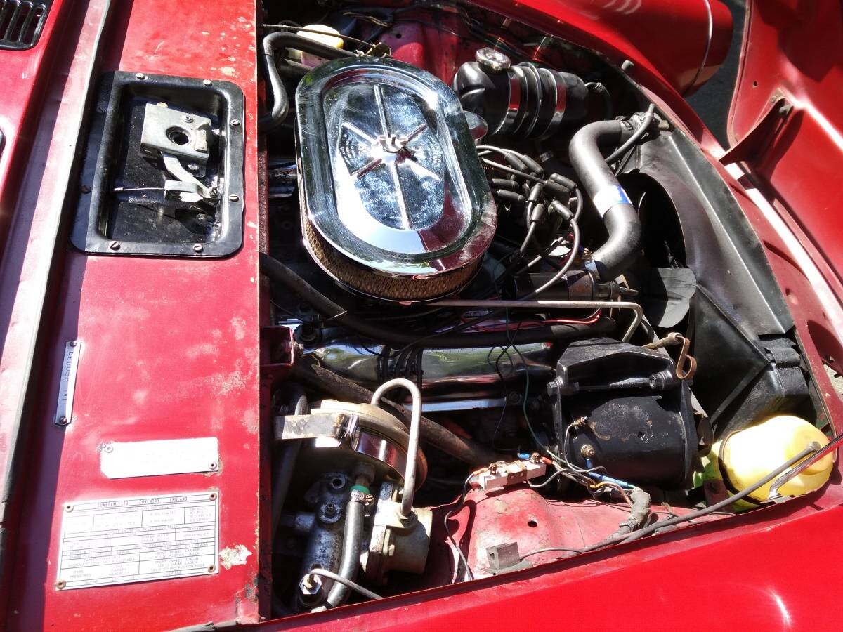 The major need is bodywork, plus new carpets. The car looks great in photos and from 30 feet, but there is some fender well corrosion. The car was originally British racing green, as many of them were, but perhaps not a Concours-level repaint in red. Honestly, though, you could drive it like it is, at least for a while. The undercarriage photos look very solid, and Oregon is fairly kind on cars.
