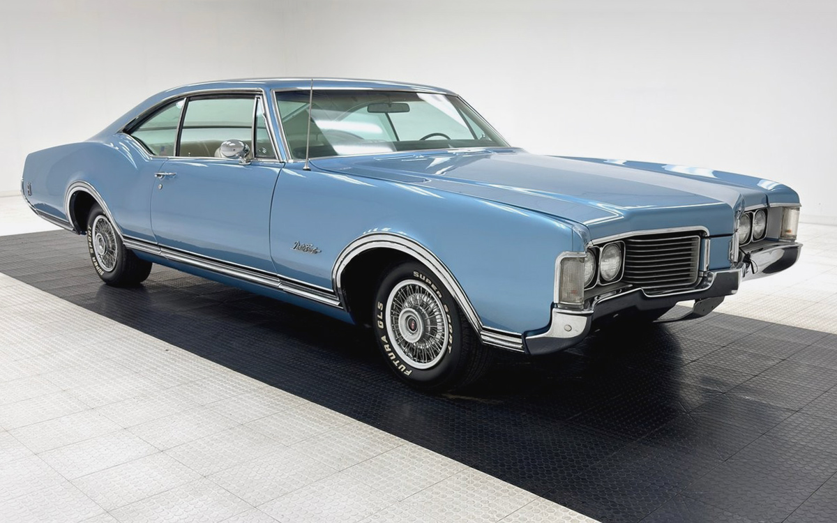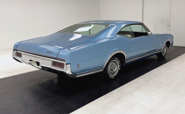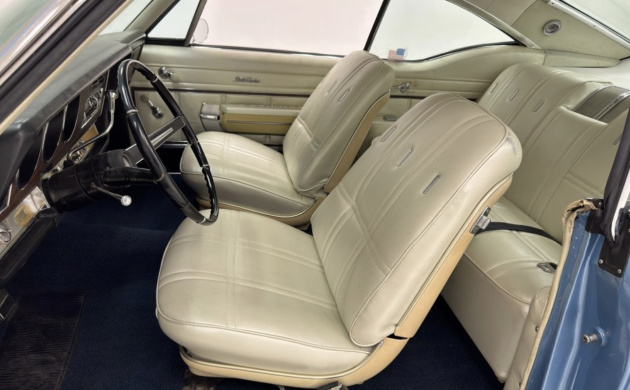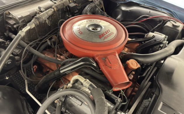 During the 1960s, options lists were legion: buyers could choose seat headrests, air conditioning, remote mirrors, various radios and steering wheels, several engines, trim and moldings, an oil cooler …. you could equip a base-model Delmont with enough goodies to exceed the price of the top-shelf Delta Custom. This car is powered by the Rocket 455 cu. in. V8 breathing through a four-barrel, good for 365 gross hp. A three-speed automatic puts the power to the back wheels. This engine bay, as well as the underside profiled in the listing could benefit from some cosmetic improvement, but the seller notes that this example runs fine with plenty of get-up-‘n-go.