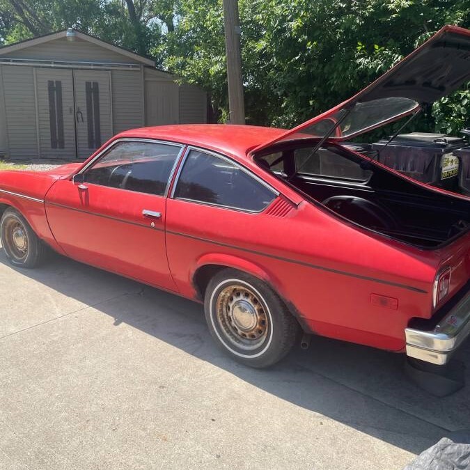 Thatc4 cyn.motor is locked up and junk..comment was it needs a water pump…and a motor….car looks decent though..as for putting a 350 motor in that…you gotta be kidding..it won’t stop in a 40 acre field.or hold that motor to the ground..it’s not wonder they cancel the car in 76…it was a total disaster on the motor and.design of the car..Ed coles.last hope in.71..the vega car.
