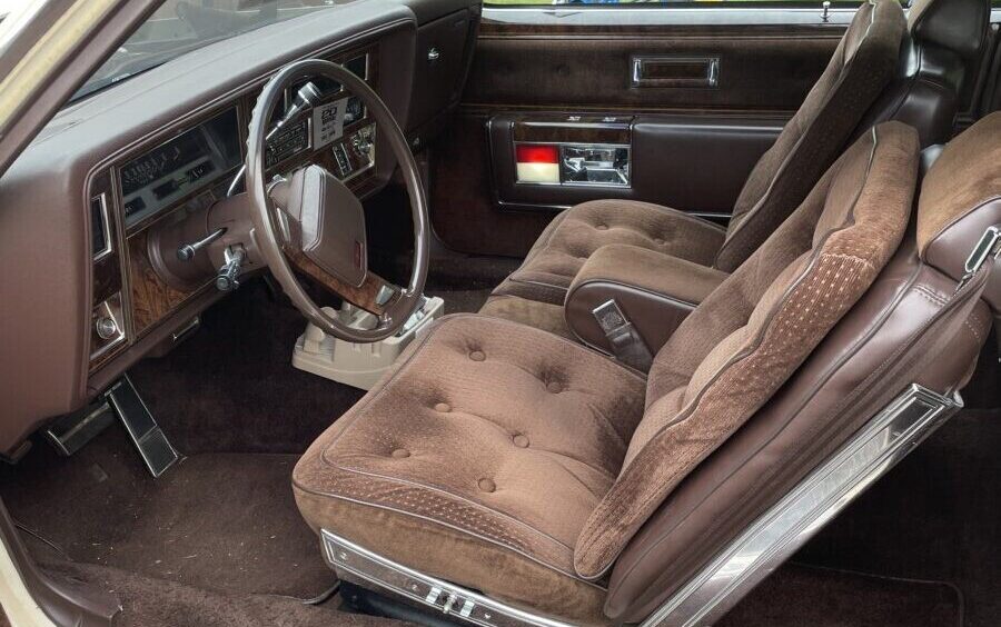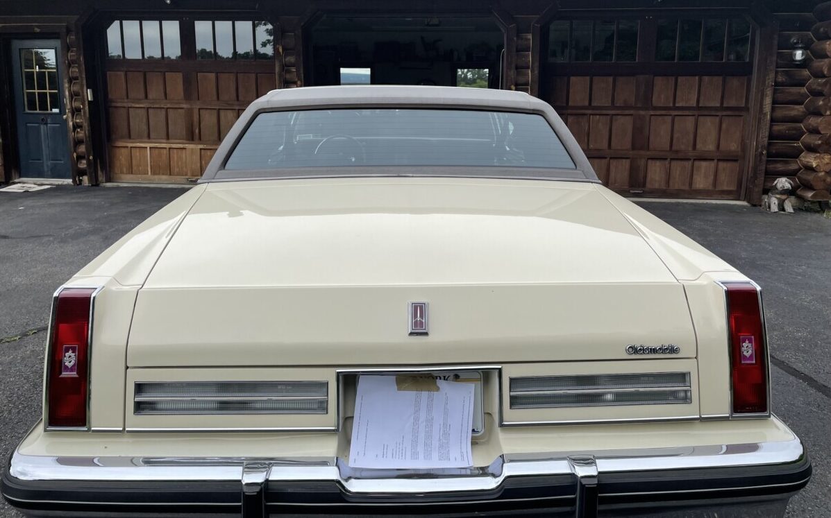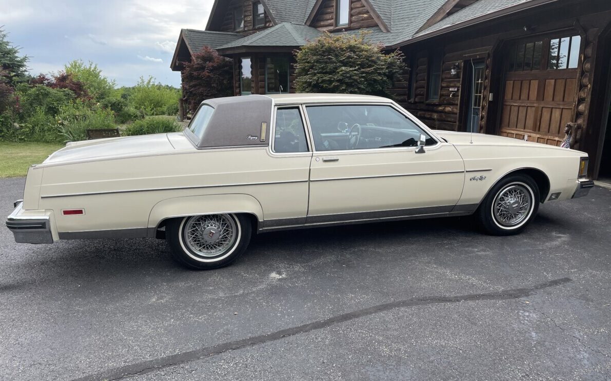 Listed as having a mileage recording of only 49 K miles, this Ninety-Eight is exceedingly clean. The Cream finish (code 59), chrome, and trim present perfectly as does the landau vinyl top covering. And it wouldn’t be an ’80s Oldsmobile without wire wheel covers and fender skirts.