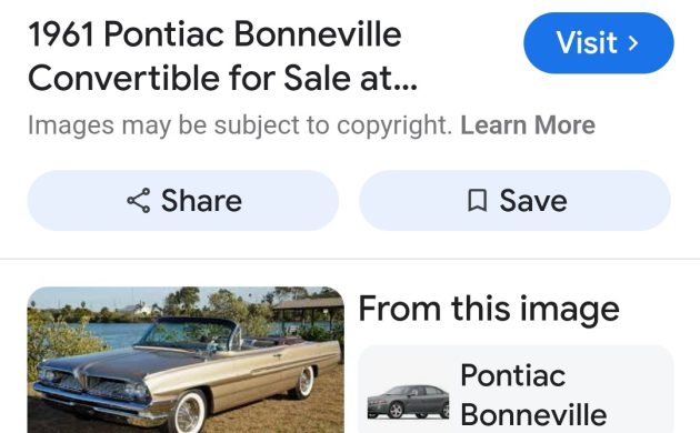 My aunt had a new ’61 Cat SW which of course, has nothing on this Bonneville or convertible. Just thought I’d mention they traded in their 1959 Cadillac Coupe de Ville for the ’61 Catalina statio wagon because of another mouth to feed. It was a nice car. Big, stylish, roomy, powerful enough & comfortable. That got totalled on a grocery getting trip and replaced with a new 1963 Catalina Station wagon.