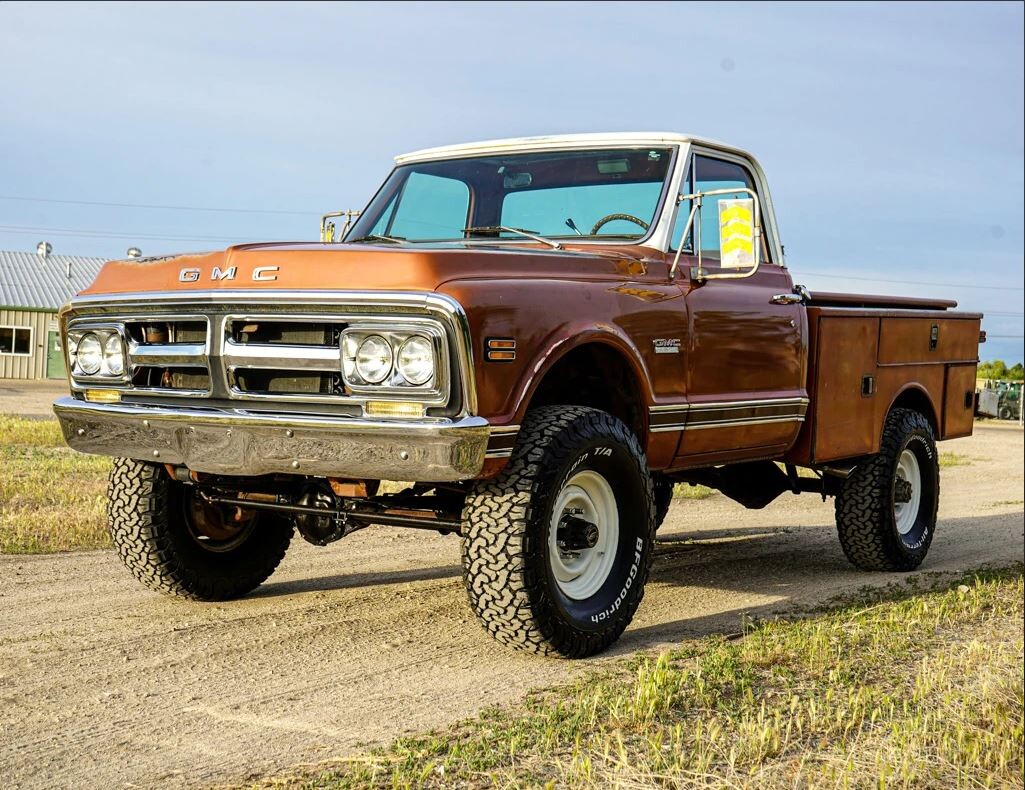 fancy up the u. box on there to match the cab or go short bed step side (just cuz ita 4WD). I got a lota wrk outa 2nd gen “Action Lines” (’67/72) 4 wheelers. This gmc w/split grill and all the chrome is interesting~