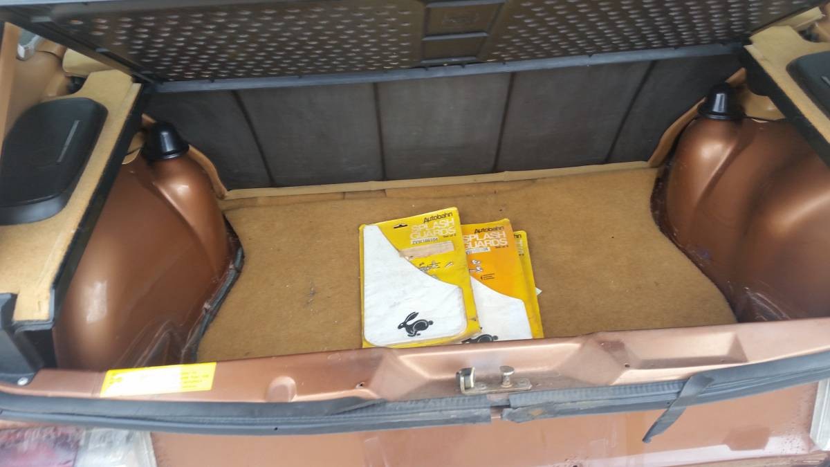 The trunk is nearly spotless, and a set of NOS mudflaps is included. The shock towers show zero evidence of rust or really any cosmetic damage, and the privacy tray remains in place. Aftermarket speakers can be seen out back as well, so someone definitely spent some money personalizing this car back in the day.