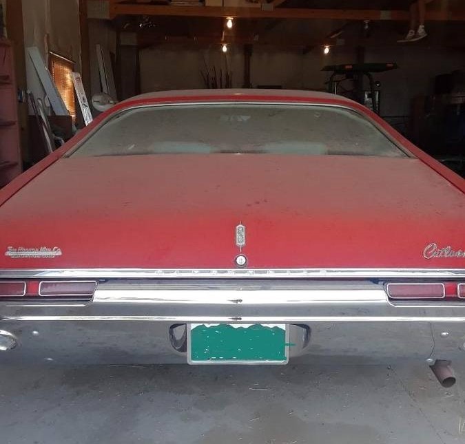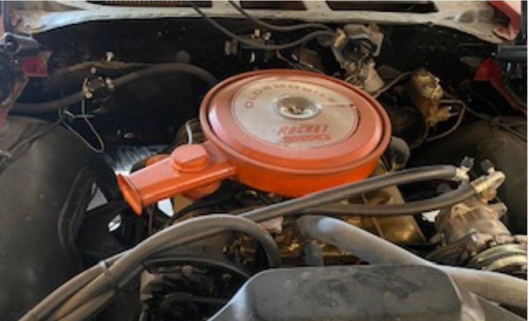 I had 2 68’s and that steering wheel looks like it’s off a later model 77’79’?? But this noted is not factory A/C as all v-8 where installed on the passenger side and the air cleaner should have the Olds 350 Rocket 🚀 and that had 3 different sets of tail light notice the chrome ascent is correct for this car along with the solid bumper so no 442 parts here as it was sold as for bucket seats they may have added them to the restoration and looks as if it suffered some water damage at rear window