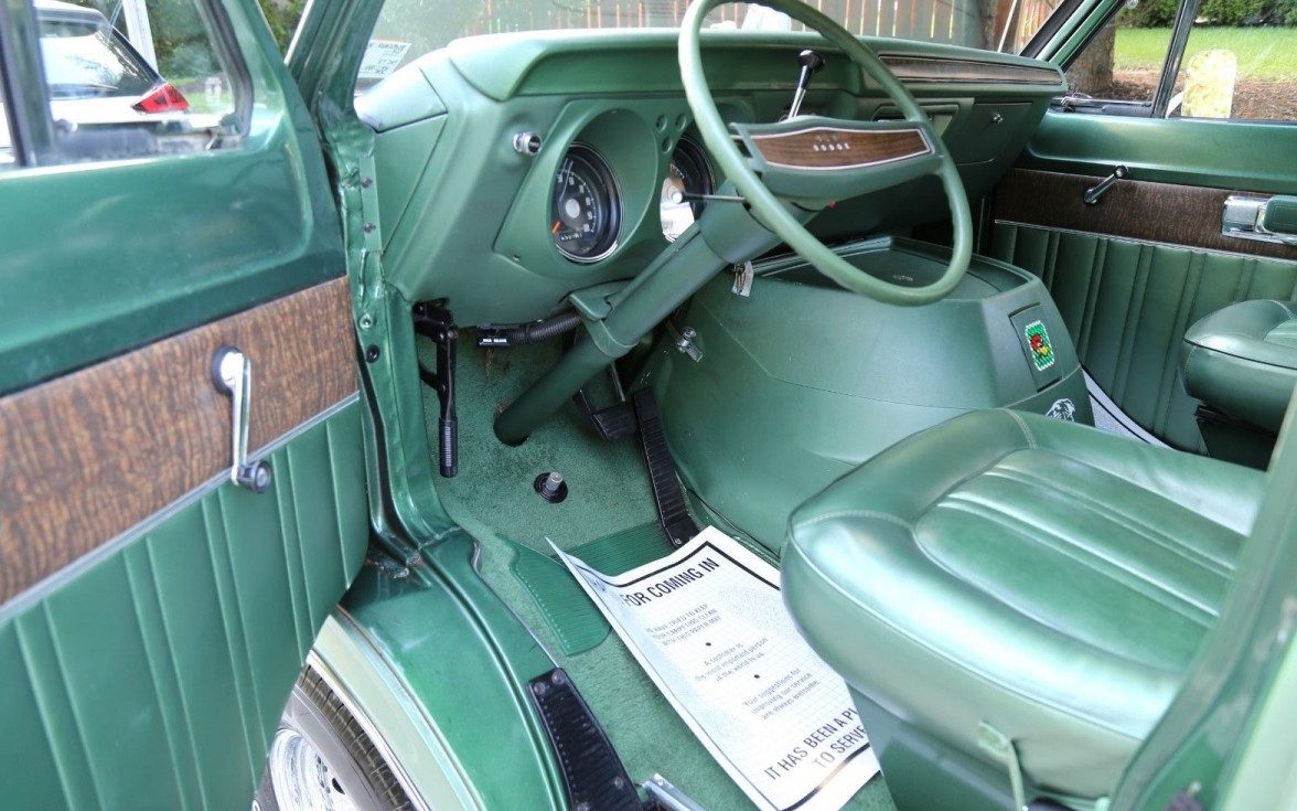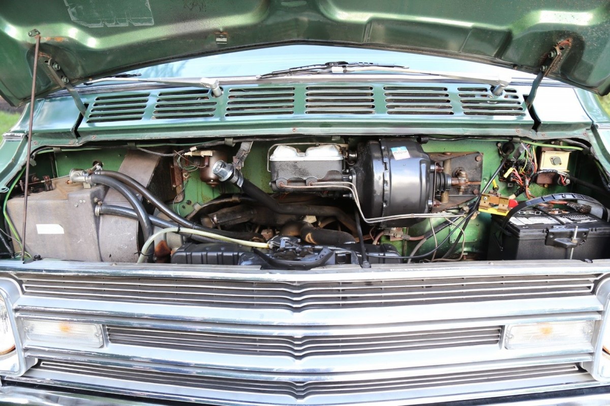 The seller says that this is a V8-powered van so it could be Chrysler’s workhorse 318 cubic inch version, although a 360 was available according to the literature of the day. Gear shifting is via Dodge’s LoadFlite automatic transmission. The engine bay – what you can see – looks almost as perfect as the rest of the van. It doesn’t appear to have air conditioning, but at least you’ll look cool behind the wheel.