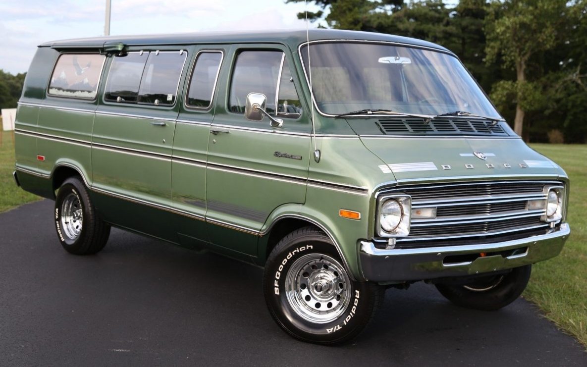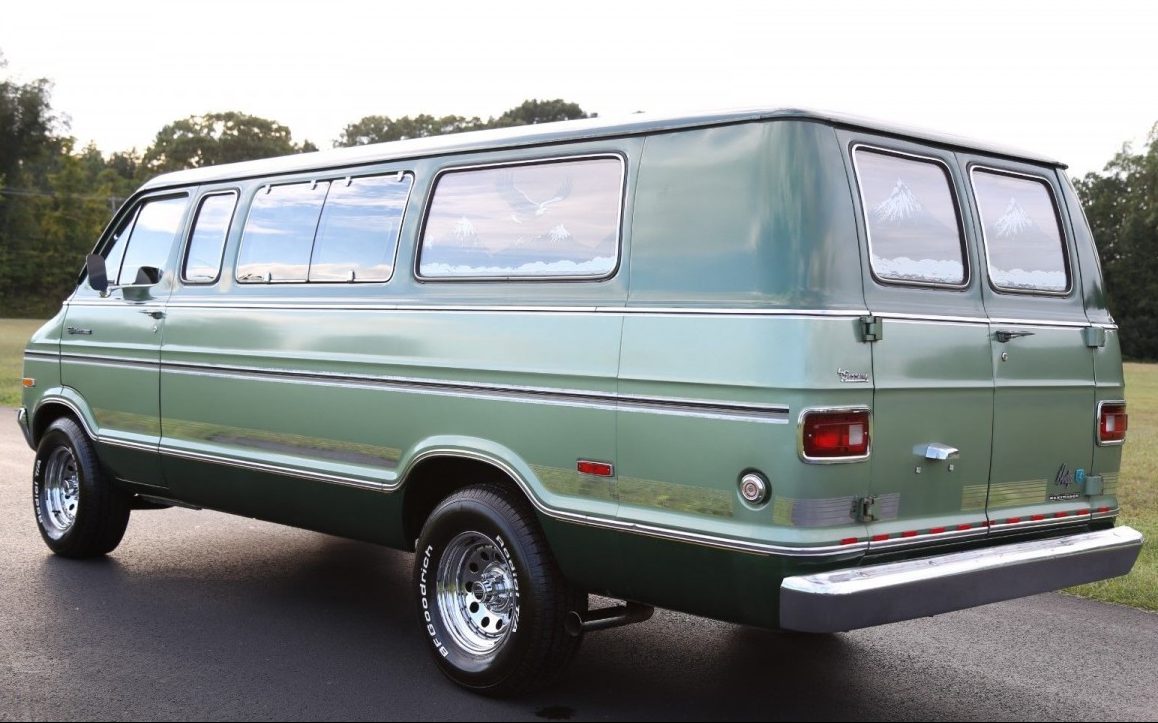 I have one almost just like it, with the windows, chrome and a darker Jade Green, i bought new in 1972, while in high school. It was “COOL” with the girls, but not with the parents. LOL Mine is also a Maxi B-300, with AC and power everything, but I installed a hoped up 1970 340 with special made 15 ” X 8.5 in the front and 15′ X 10″ in the rear, with a dana 60 3.54 gear. Sorry to say that I let it sit the last 10 years and the rust took over. I also went through the family thing, camping, traveling and just hauling everyone around. MPG was around 14 with the original 318, but the 340 brought it down to 10. I would love to buy this van and start over, but it is a family ride and a great one at that.