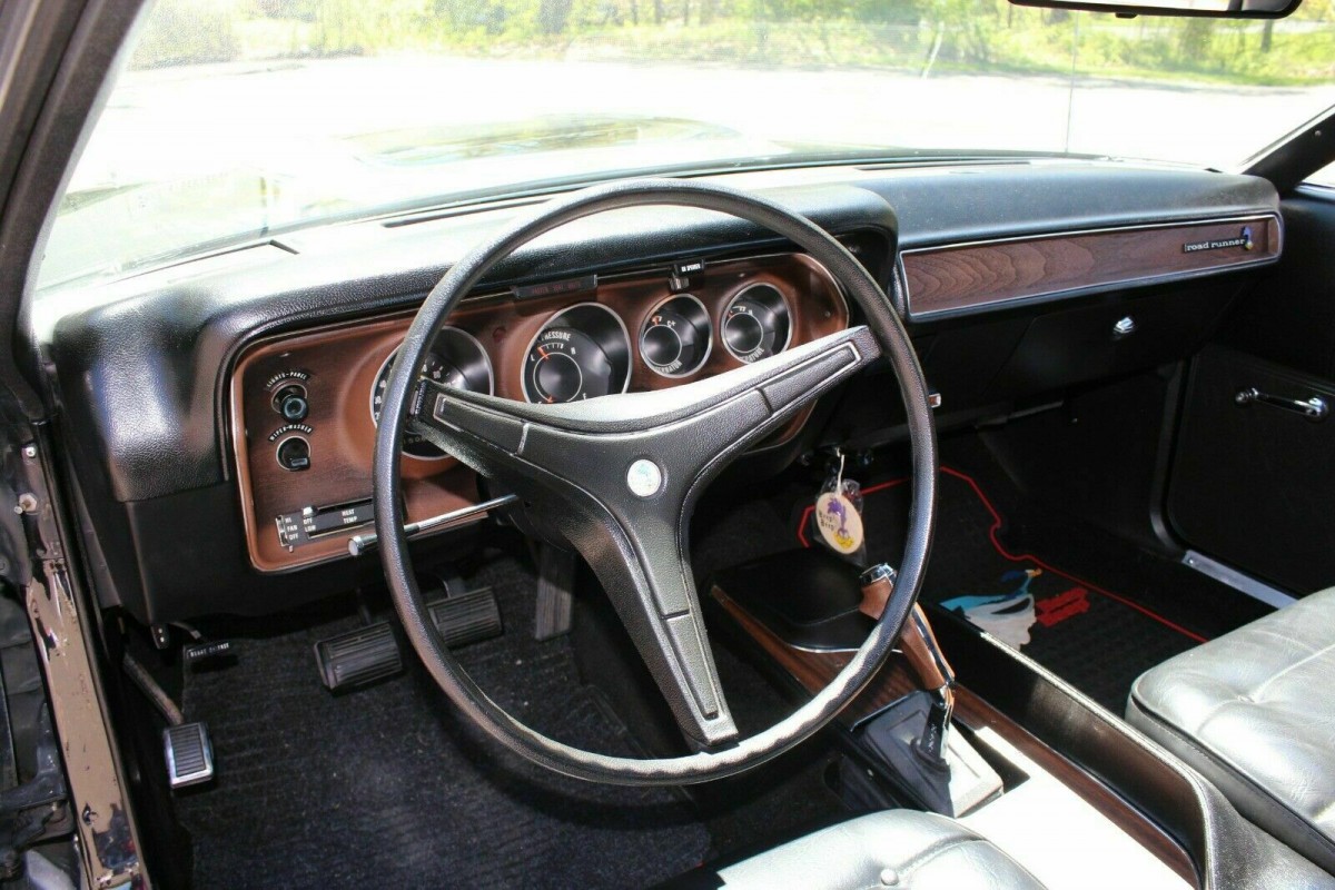 Talk about a paint job with serious depth. The Black paint on the Road Runner looks to be about as close to perfect as you are ever likely to find. There is some confusion here though. In one part of the listing, the owner refers to it as being original, while later on, he mentions that there has been a repaint in PPG clear-over-base. Regardless of which is actually correct, he does state that all of the steel in the car is original, with no previous accident damage or rust repairs. He does provide a number of shots of the car’s underside, and it appears to be as clean and solid as you could ever hope to want in a classic car. The white strobe stripes are in great condition, and the exterior trim, chrome, and badges are all perfect. It’s pretty hard to fault the car’s exterior presentation because the panels don’t show a single ripple or wave anywhere. At the bottom of this article is a video which provides a walk-around, and you get a real idea of just how good the Road Runner actually is.