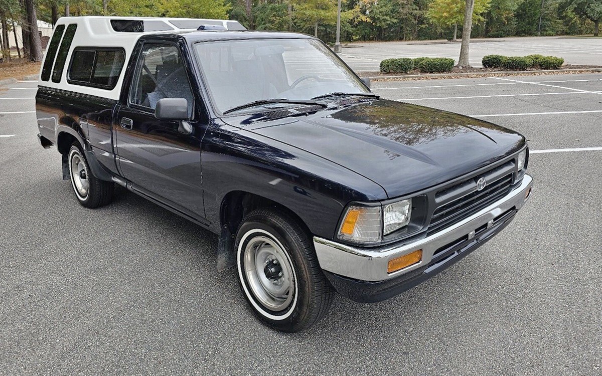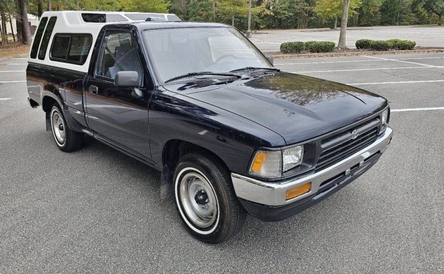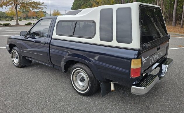 Great-looking Toyota pickups are coming out of the woodwork lately, and this 1994 truck is another fantastic one. Dark Blue Pearl paint is hard to capture but you can see the color in a few photos. It looks black in a lot of them. The big cap / topper / shell on the back is a bonus. The seller has this blue beauty listed here on eBay in the birthplace of Vanna White: Myrtle Beach, South Carolina! There is no reserve and the current bid price is a mere $3,550.