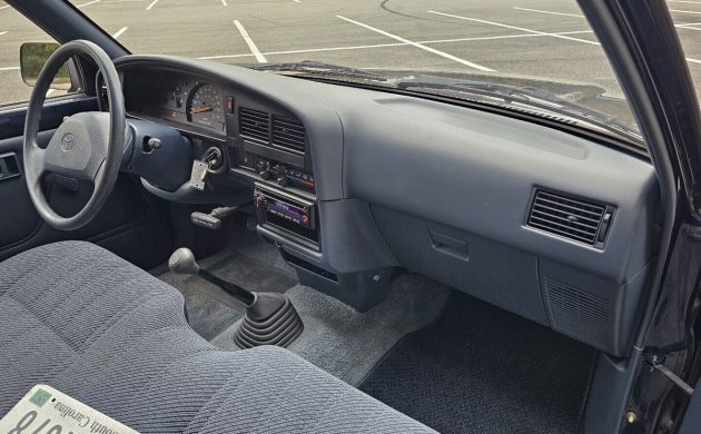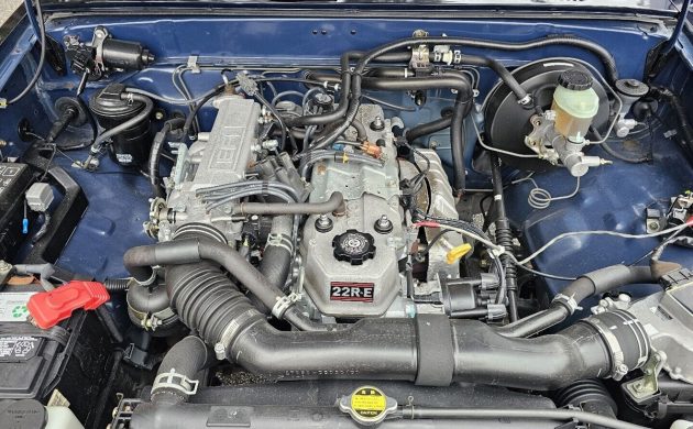 The engine is, yes, Toyota’s 22R-E, a 2.4-liter SOHC fuel-injected inline-four with 104 horsepower and 136 lb-ft of torque when new. Spinning through the five-speed manual to the rear wheels, it’s said to run great and they list the mileage as 18,119 and I believe it. Any thoughts on this tiny time capsule Toyota truck?