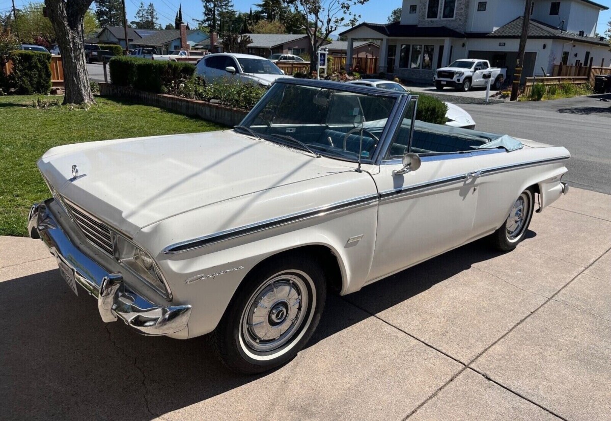 A 1964 Daytona convertible with factory A/C is extremely rare, I would estimate less than a dozen convertibles came off the line with A/C. Almost everything is available [either NOS or reproduction parts] for this car, including the missing turn/park light lenses. I’m a bit surprised that as a top-line convertible, well optioned, it never had a clock! These cars are reliable, simple to work on, and easy on fuel. Compared to other 1964 makes of cars, the mechanical parts are often downright cheap.