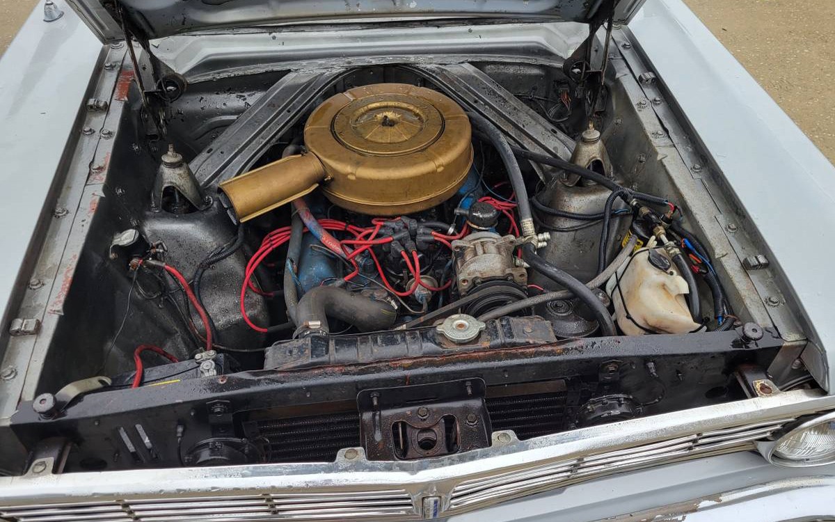 Thanks to the seller for popping the hood and showing us this nice 289 cubic-inch V8. It would have had 200 horsepower which isn’t a lot but for a 2,900-pound car with 282 ft-lb of torque, it should get up and go very nicely. The seller says that it runs strong and this is an original car. It sure looks great to me. Have any of you owned a second-gen Falcon? Bonus points for a Sprint.