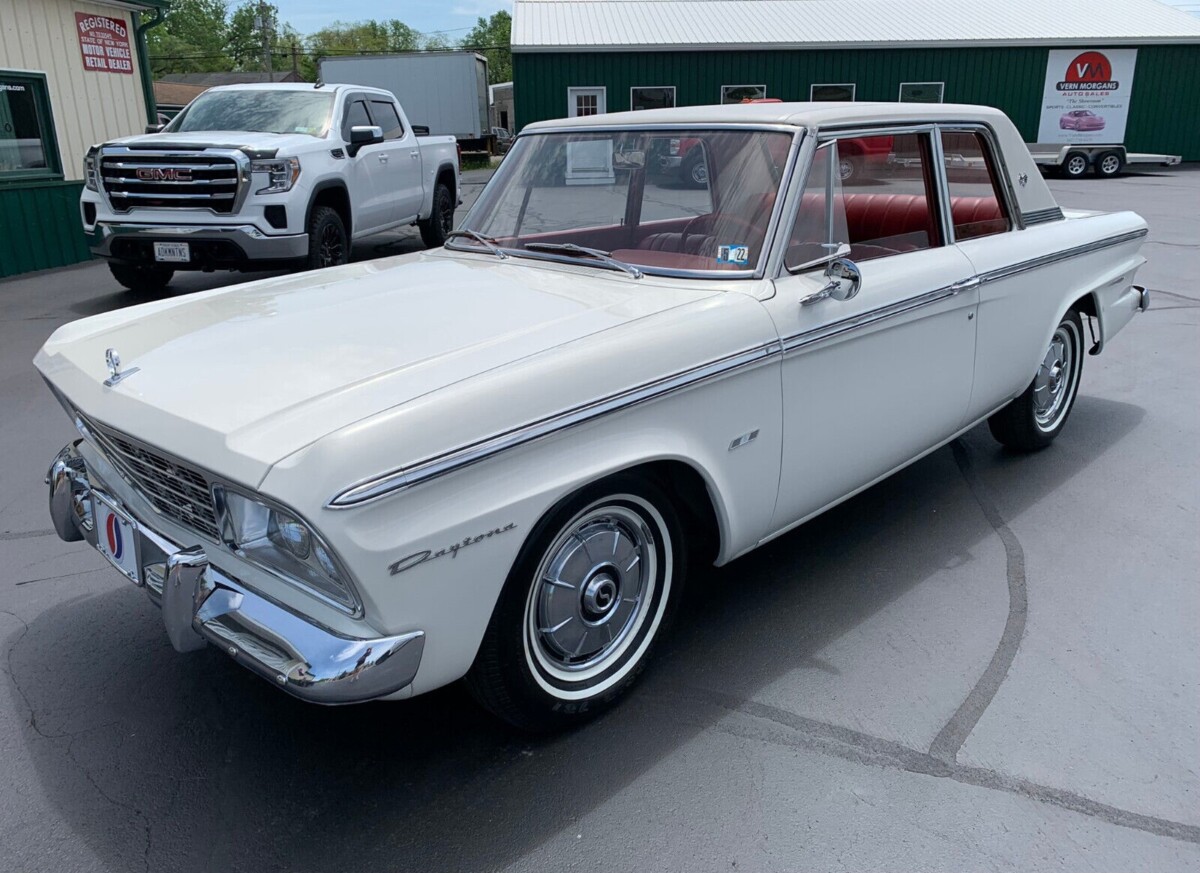The Daytona was a rebrand of the Studebaker Lark which had been around since 1959. In addition to a 4-door sedan and the cool Wagonaire station wagon, the 2-door Sports Sedan rounded out the mix. All production had been consolidated in Hamilton, Ontario as of Christmas 1963. The Sports Sedan was the rarest of the lot, with just 1,628 copies assembled in 1965. All but one of those had a V8 engine, flanked by a token single inline-six. With the move to Canada, all of Studebaker’s engines were now sourced from General Motors, so there’s a 283 “Chevy” V8 under the hood, built by GM of Canada.