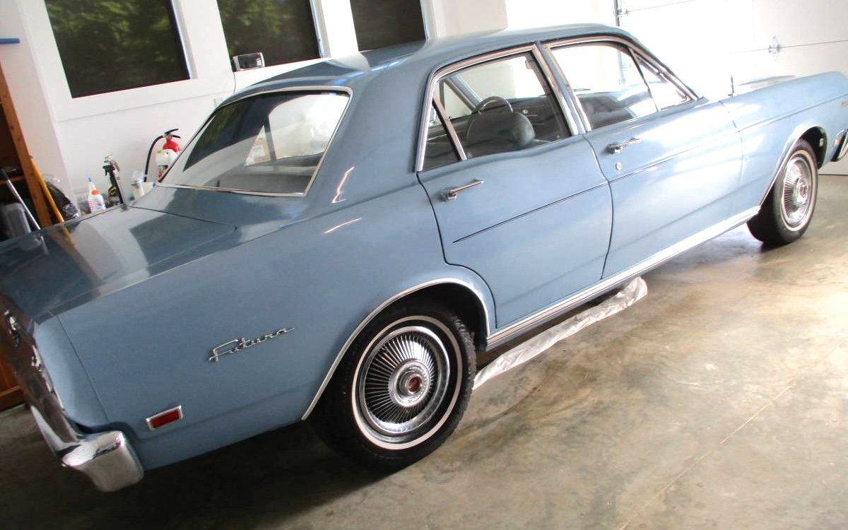 Third-generation Falcons were produced from 1966 to 1970. Other than adding safety items required by the DOT, the 1968, 1969, and 1970 Falcons were carried over from 1966-67. These new features included side marker lights, head restraints, and shoulder belts for front seat passengers. 95,000 Falcons were assembled in 1969, a fraction of the Maverick’s output. Of these, fewer than 12,000 Futura (the top trim level) 4-door sedans were sent to Ford dealers.