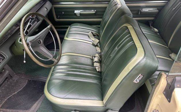 The sweet running 318 is naturally flanked by a TorqueFlite automatic transmission. The body, paint, and vinyl top are all up to snuff, and the green interior appears to carry original Plymouth upholstery (if so, where are the headrests?). The dog dish hub caps are a nice touch with the DY3 finished steel wheels. The trunk is so nice you’d hardly want to carry anything in it. The seller is asking what may be top dollar, but this seems like a top-dollar automobile.