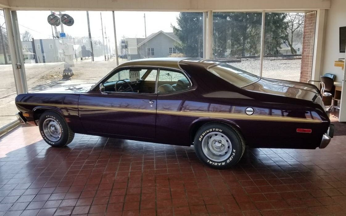 The seller’s Gold Duster looks as though it just emerged from a time capsule. We’re not provided much in the way of history on this car, so it would be nice to know how it has managed to stay so nice rather than being driven until it was worn out. The seller does say there is no rust or has there ever been any and the purplish paint is in excellent condition. It would have been cool if the seller had included a photo of the cowl tag so we could figure out exactly what shade of paint the car is wearing.