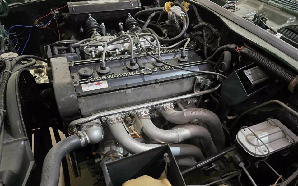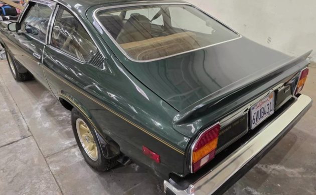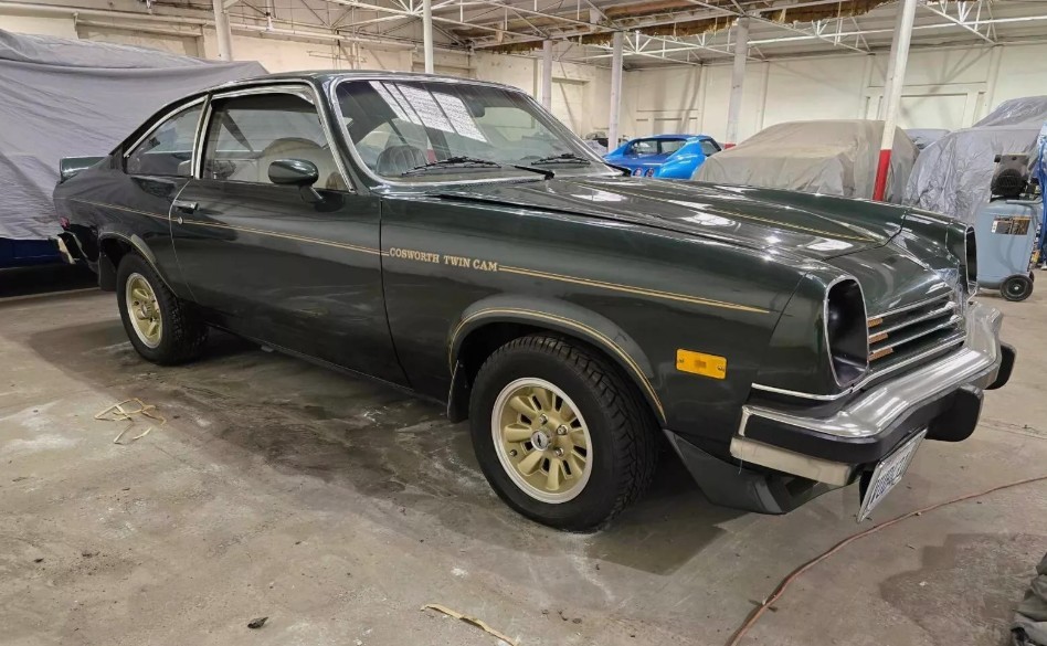 The rarest Cosworth Vega are those from 1976, like this one. 1,447 copies were sent to Chevy dealers before the GM division decided to discontinue the Cosworth deal. With factory headers, the engine was good for 110 hp. The seller’s vehicle wears Dark Green Metallic paint with a Buckskin interior. Both look as good as new. It also sports the Cosworth signature 8-spoke gold wheels. The car also has spoilers fore and aft.