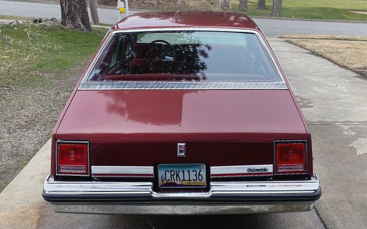 Wow, looks fantastic! I remember when these were first out, and I found the style intriguing. Best I could do for myself was a Hot Wheels model called “Flat Out 442” in orange and I LOVED it! I generally don’t read the other comments because it is a free for all, and this design is unquestionably avantgarde and probably polarizing. Myself, I loved the modern interpretation of the fastback styling circa 1949. Bill Mitchell was drawing on inspiration from the past as he wound down his career, and I only noticed when looking at this in profile that it was a precursor to the 1980 bustleback Seville that was definitely polarizing. The design seemed very new age with a dash of European sophistication, and I loved the little badge under the model name that had a row of International flags. That always drew my attention as a kid. My great Uncle was a retired military colonel who had a long history of being a Buick customer. He had a rather stodgy looking brown (no thanks) Century four door with poverty hubcaps that looked like something out of the military pool. The Olds models were generally more flamboyant. Too bad this Oldsmobile was introduced in the malaise era and saddled with only 110 HP from the Olds V8! That being said, I think it looks rather tasteful, and typically late 1970s / early 1980s “upscale” / middle class. The wire wheel covers look rather distinctive, and not the style that seemed to be on every division’s cars with only the brand logo differing. The blackwalls also look pretty sharp. The two tone paints that GM was doing in the late 1970s on cars like the Caprice Classic works well here too, the small, sports steering wheel, and the unfussy cloth seats rather than ostentatious velour. This looks very nice indeed, but my hesitation would be the powerplant’s anemic performance in modern traffic. In some ways I’d want a restoration project and put a wonderful crate engine in it. Woo hoo!