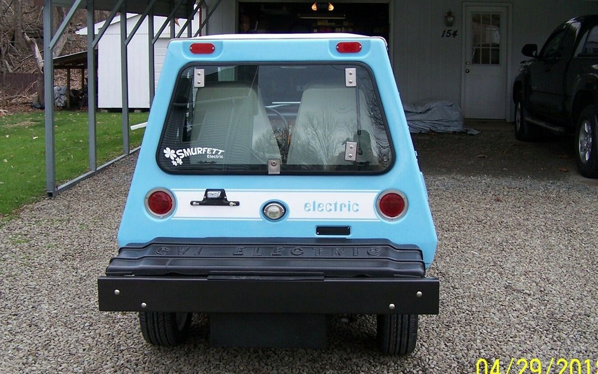 I owned a CitiCar in Denver, the same color. I drove it all over, including on the ten-lane Valley Highway (I-25). Ran batteries down a lot; you could hear the contactors sizzle as they melted- time to push to curb, get file out and clean contactors, hope to get enough juice regenerating in the batteries to get to an outlet to charge. It would screech the tires in 1st and 2nd. Fun – wish I still had it.