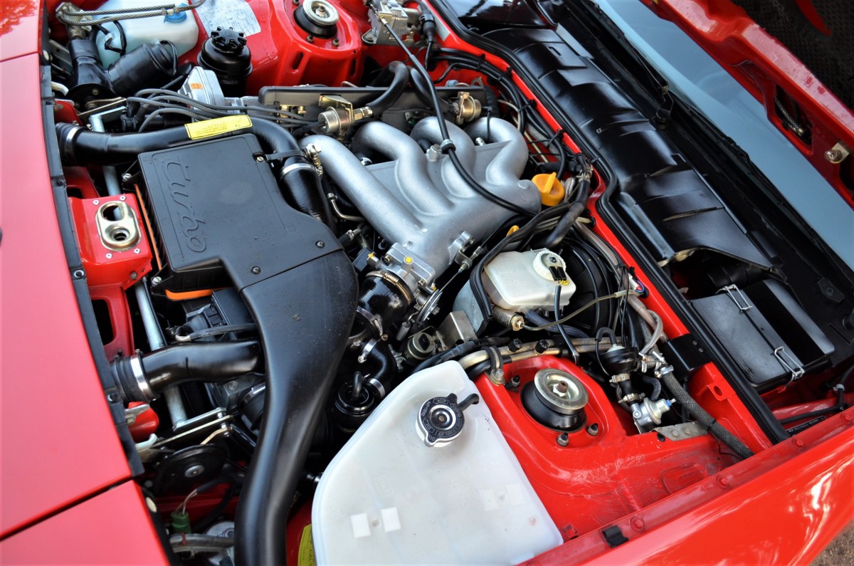 Lift the hood of the Porsche, and the first thing that you can’t help but notice is just how immaculately the entire engine bay presents. It is extremely impressive for a 33-year-old car, with no signs of deterioration or discoloring of the paint or alloy components. What the next owner will be getting for their money is a car that definitely delivered “bang for your bucks” back in 1986. This was the first year of 944 Turbo production, so the original 2,479cc 4-cylinder engine that had powered the 944 was given a bit of a boost. With some internal upgrades, it found itself equipped with both a turbocharger and intercooler. This boosted power from a reasonable 147hp to a very respectable 217hp. Top speed remained at a factory declared 152mph, but the Turbo could accelerate from 0-60mph in 6.3 seconds, while the ΒΌ mile could be dispatched in 14.4 seconds. The power from that beautiful engine finds its way from the front of the car to the rear wheels via a rear-mounted 5-speed manual transaxle. Steering is power-assisted, while the Porsche also features 4-wheel anti-lock disc brakes. The big news with this 944 is that it remains original and unmodified and that it has a genuine and documented 33,500 miles on the odometer. Unsurprisingly, the car is said to drive perfectly, and it comes with a raft of documentation, including the all-important full service history.