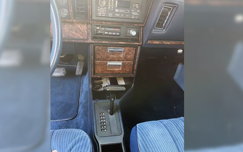 The interior is beautiful and you can see that it doesn’t have a 4-speed or 5-speed manual which is a bummer, but a Chrysler three-speed TorqueFlite automatic. This car appears to have stand-alone power door locks which is an unusual feature since it doesn’t have power windows. I thought that power windows and locks were a package deal, at least according to Aries literature that I found online. The seller mentions the power door locks so maybe Canadian cars were different as far as options packages? It does have optional low-back cloth bucket seats and they look like new both front and rear.