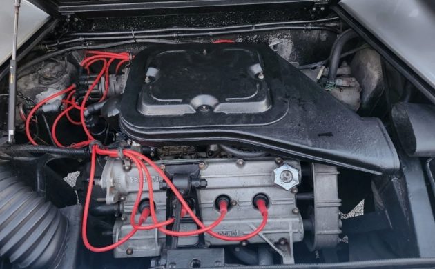 Ostensibly, the 308 GT4 was built to offer buyers a 2+2 configuration, and unusually, the design work landed on Bertone’s desk – no doubt annoying Pininfarina. But Marcello Gandini solved several problems for Ferrari, configuring the car with a compact, mid-mounted 3.0 liter V8 decked with multiple Webers (four on our subject car), positioning the five-speed gearbox below and behind the engine as in the 246, and stretching the 246’s tubular chassis a few inches to make room for the second set of seats and a tiny rear trunk. US-delivery cars were rated at 240 hp – more than enough to propel the GT4’s 2600 lbs. The result is an exceptionally well-balanced driver’s car. The seller notes that the belts were changed in 2015; the water pump and carburetors were rebuilt at the same time. So: it’s time for timing belts! Delay could be disastrous.
