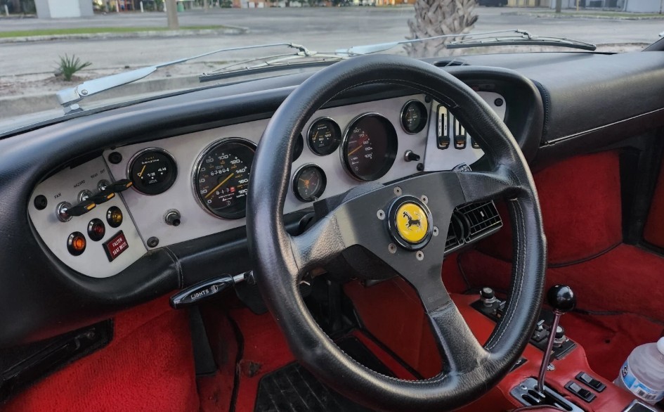 Ostensibly, the 308 GT4 was built to offer buyers a 2+2 configuration, and unusually, the design work landed on Bertone’s desk – no doubt annoying Pininfarina. But Marcello Gandini solved several problems for Ferrari, configuring the car with a compact, mid-mounted 3.0 liter V8 decked with multiple Webers (four on our subject car), positioning the five-speed gearbox below and behind the engine as in the 246, and stretching the 246’s tubular chassis a few inches to make room for the second set of seats and a tiny rear trunk. US-delivery cars were rated at 240 hp – more than enough to propel the GT4’s 2600 lbs. The result is an exceptionally well-balanced driver’s car. The seller notes that the belts were changed in 2015; the water pump and carburetors were rebuilt at the same time. So: it’s time for timing belts! Delay could be disastrous.