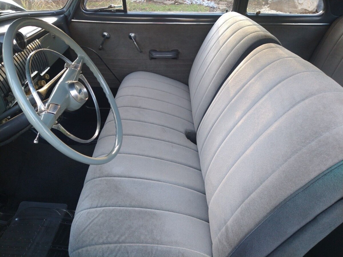 Cars did not evolve much from 1946 through 1948 as the economy recovered from the massive disruption of WWII. Consequently, much was hanging on the year 1949, when the Big Three would introduce their first post-war designs. At the same time, studios were chastened by prior experiences such as Chrysler’s Airflow – a daring takeoff on the streamlining movement that turned into a huge commercial flop. Even Hudson’s “step down” bathtub styling was too extreme. The trick was to be different – divorced from the pre-war look, but not too much so. The Styleline hit all the right notes. It was not slab-sided, it was not bulbous, and it had the modern “pontoon” look but .in a subtle way. This notchback body was produced alongside the Fleetline, a fastback style. Both were offered in Special and Deluxe trim. This sport coupe is the most desirable of the body types. The seller indicates that this car has zero rust on a single repaint which according to the tag appears to be in its original colors of Aspen Green and Fathom Green.