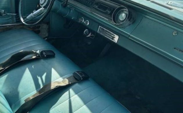 The interior is in pretty fair shape, though the seating upholstery, its pattern in particular, does not appear to be original (Bel Air standard pattern included wide stripes), though the seller claims that it is. Regardless, it’s a neat and clean environment and doesn’t appear to need a lot of attention, though the door panels are looking a bit shaky. The front seat belts, a standard requirement by ’65, may or may not be original equipment, though black was often the standard default shade. There’s no included image of the wayback, and that’s unfortunate because its condition can provide a clue as to how the car was used (or maybe abused?) over the years.