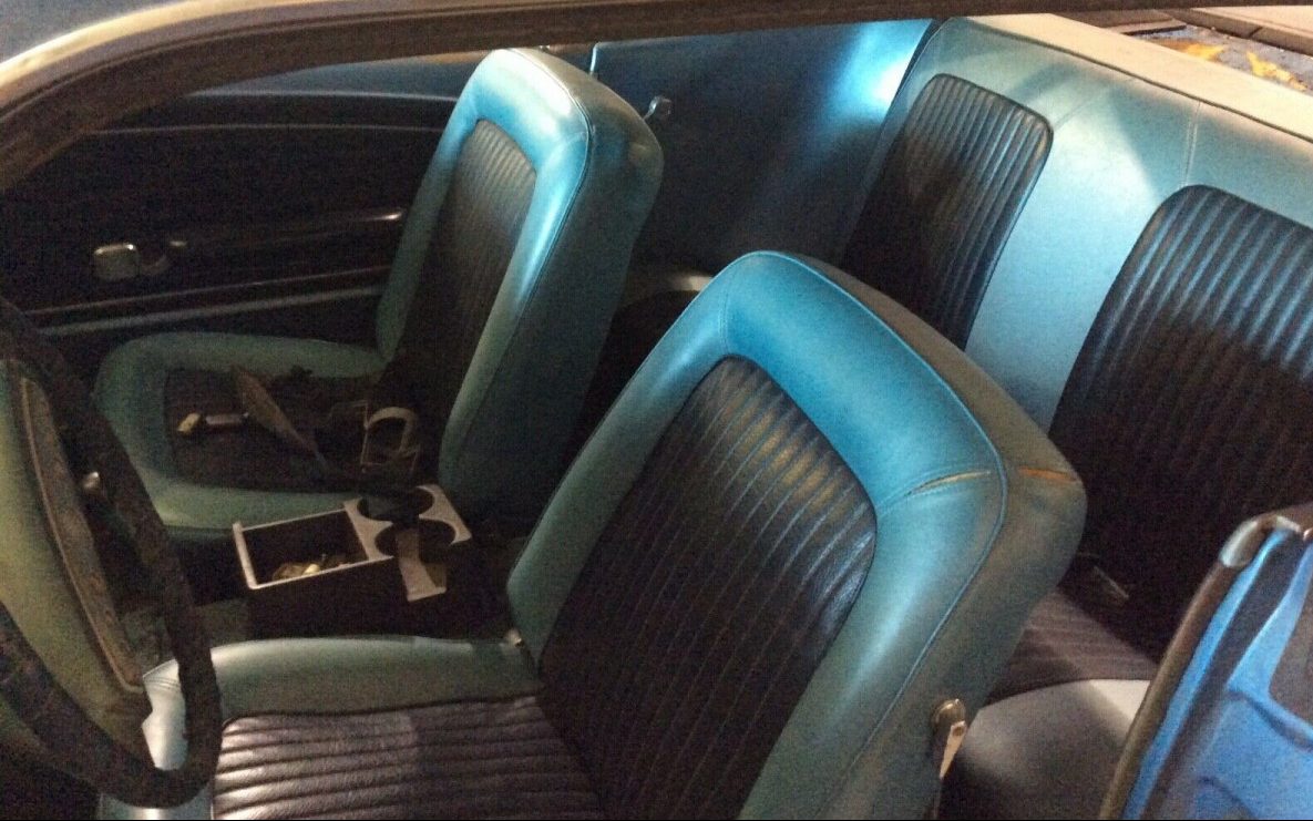 The seller suggests that this Mustang, “needs restoration and bodywork“. Well, the Brittany Blue (code Q) paint is obviously flaking away and there is an abundance of surface rust but it’s hard to tell how invasive it may be. The seller does mention that the driver’s side footwell has rust and even the bumpers haven’t escaped the start of corrosion. There is no reference made as to this Mustang’s storage quarters but it’s easy to imagine that it was a damp environment. Nevertheless, the exterior is not showing signs of crash damage.