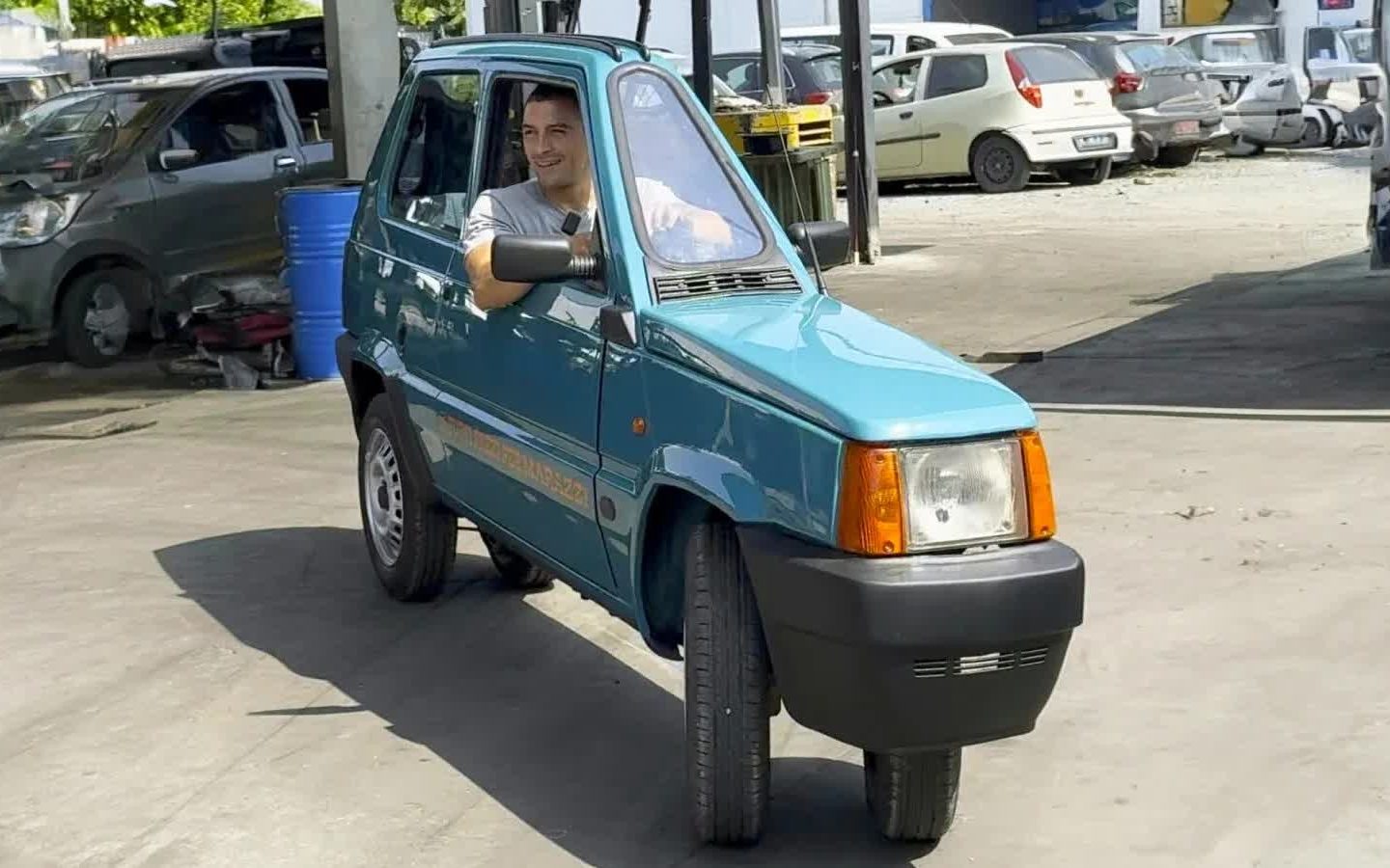 A mostly-stock interior graces the slender Fiat. Check out that tiny steering wheel. Narrower cars present less resistance to the wind, so imagine the reduced drag on this custom creation. Check out a host of YouTube videos documenting the Panda’s construction and functionality.