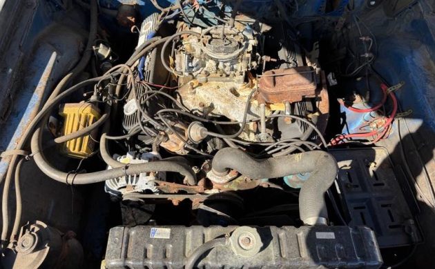 The exterior body panels don’t appear to have major rot – I agree with that observation. But there’s enough mismatched paint and primer that it’s hard to tell what’s really going on. There are some obvious dents, and the driver’s side grille component is missing, but beyond that, a close physical inspection is warranted. In particular, the few images of the underside, which aren’t terribly telling, do show signs of heavy scale, so if I were interested in this car, I’d want to know a bit more about the underside’s integrity. The not-inexpensive BFG Radial T/A tires appear to be favorable, but those throw-back chrome-plated steel wheels are showing typical rust and deterioration.