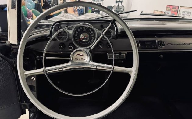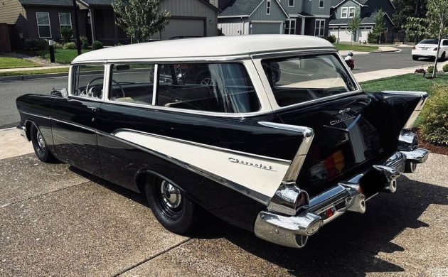 1957 marked the debut of the new 283 engine for the 210, and while that’s what can be found under the hood here, the seller indicates it’s not the numbers-matching component. However, the bay is nicely detailed, and I’m sure the small block gets plenty of stares at car gatherings. A two-speed Powerglide automatic is also present, plus a few upgrades have also been added, such as disc brakes, power steering, and sway bars underneath. The wagon has been lowered as well, giving it a more aggressive stance for passersby to admire.