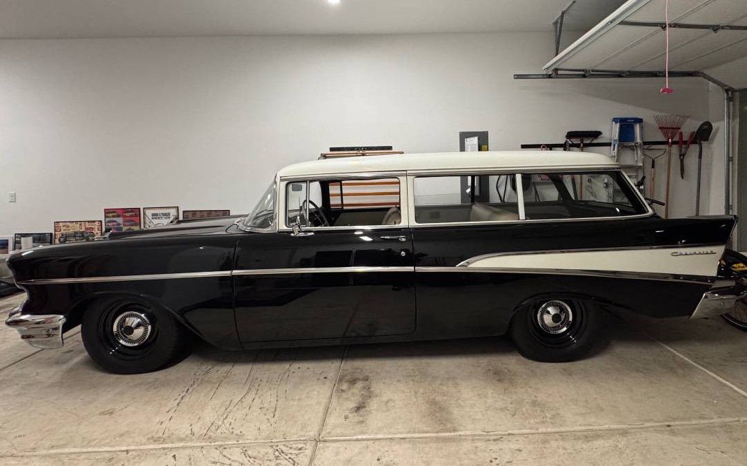 1957 marked the debut of the new 283 engine for the 210, and while that’s what can be found under the hood here, the seller indicates it’s not the numbers-matching component. However, the bay is nicely detailed, and I’m sure the small block gets plenty of stares at car gatherings. A two-speed Powerglide automatic is also present, plus a few upgrades have also been added, such as disc brakes, power steering, and sway bars underneath. The wagon has been lowered as well, giving it a more aggressive stance for passersby to admire.