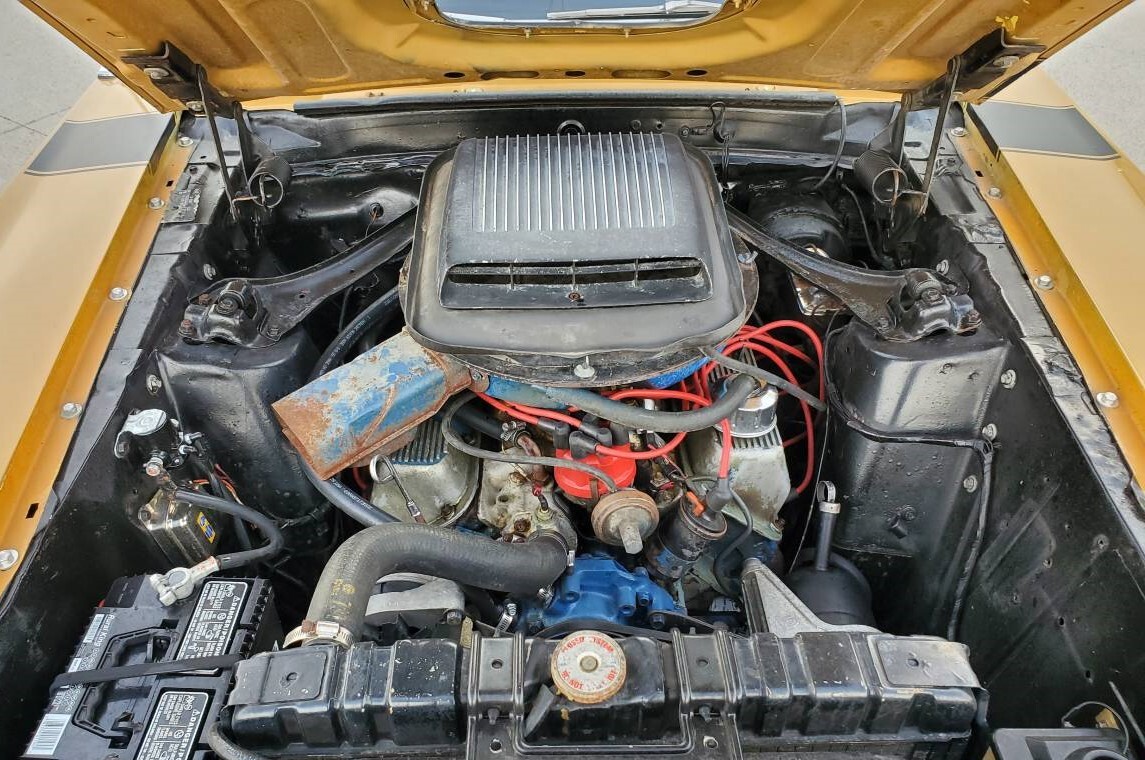 The repaint is ‘K’ code gold, which was available on ‘70 Mustangs. A rarely ordered but classy shade.
