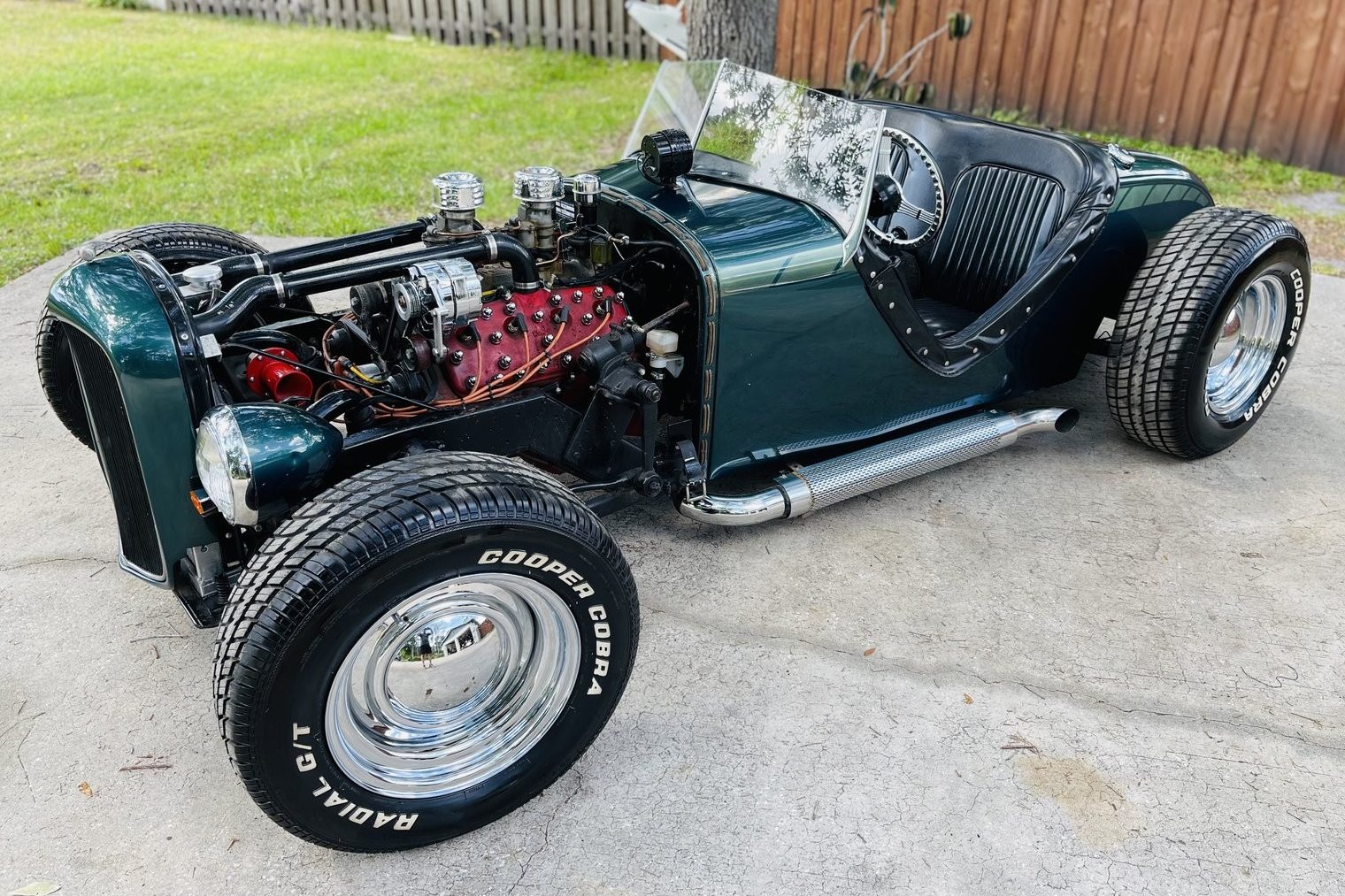 I love everything about this build! There’s no sound quite like a hotrod flattie, music to my ears! That hood scoop though. Looks like the upper part of a mailbox. A buddy of mine just finished a build very close to this except with a GM V6. The thing scoots!