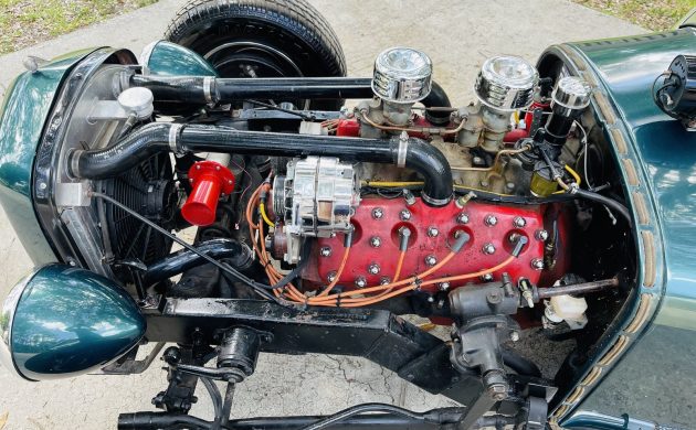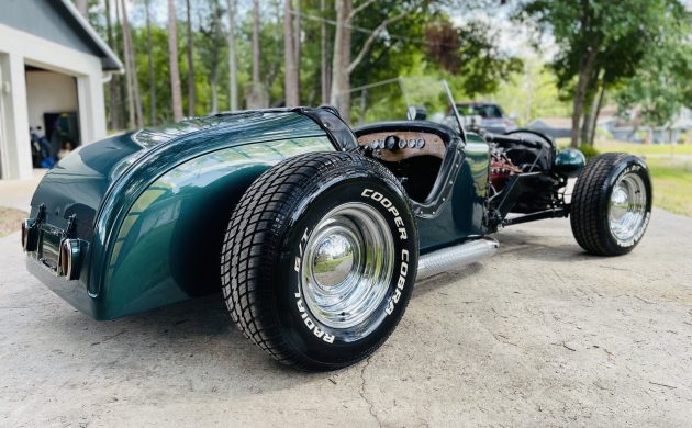 The history of this Ford is largely unknown, with the seller unearthing it as part of an estate. They believe that it has sat for a while, although how long that period was remains a mystery. They confirm that running a magnet over the exterior confirms that the only non-steel body component is the hood. I don’t see that as bad, because the hood scoop doesn’t float my boat. I would probably ditch it to improve the car’s overall appearance. The builder cloaked its arrow-straight panels with Dark Green Metallic paint, adding a quite subtle stripe in a paler shade. The Roadster presents quite nicely, with the paint shining and the wide selection of close-up shots revealing only minor scratches and chips. Performing a cosmetic refresh would be easy, although I would probably enjoy this classic in its current form as a driver-grade vehicle. The underside shots reveal floors and a frame that are rust-free, while the trim and windshield are in good condition. Rounding out the old-school approach to this build are the chrome steelies with their iconic Baby Moon hubcaps.