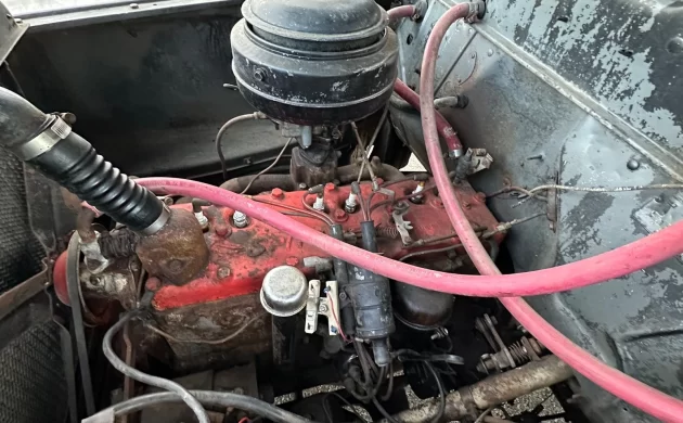 It’s certainly an unusually styled car, big toothy grins were apparently “in” after the war, perhaps to offset the post-war depression going on. This was “pre-Groucho Marx”( 1952) and they called it, “bold, stylish, exciting”, not sure about that,, like most post-war cars, they were warmed over pre-war models. The “Spitfire” head, I found, was actually named BEFORE the war,( 1940) and I think was a slightly higher compression. That extra 6hp. got you over the hill? Nah, pure marketing. The fluid drive is going to confuse most that don’t know about a stick to begin with, push the clutch in? Don’t push the clutch? And will certainly come hobbling back from the test drive in reverse. And black just enhances it’s “ugly” position, but for originality, I bet most cars were just like this. Up to $4grand, which I think is probably all they are going to get.