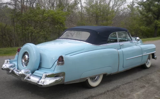 Let’s face it, it’s easy to get sucked into the gloom and doom of the collector car market and prognosticate that nobody wants anything from the pre-muscle-car era anymore. Sometimes, however, you take one look at a car for sale and know immediately that blanket statements such as those just don’t hold water. That’s what I felt when I laid eyes on this Pastoral Blue 1953 Cadillac Series 62 Convertible. It’s actually a mild custom rather than a 100-point restoration, but its indisputable presence lets you know that it’s going to sell for a big number, and it’s being sold here on eBay in Cincinnati, Ohio, with (gulp) no reserve. The high bid is currently a fast-climbing $23,088 (although the seller reserves the right to end the auction early if a good enough offer transpires).