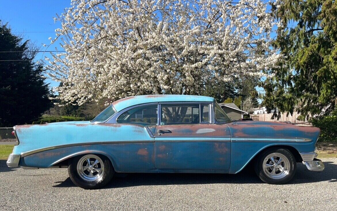 In the 90’s when I was a teenager my father restored a 56 the same as this. Even went with the same Nassau and Harbor blue colors. He rebuilt the 265 but with the Dual quad set-up to get the 245HP they were rated for. To me the 56 Chev has the nicest dash of all cars. I am trying hard to understand why they would put that hideous pad over it. Other than that I love the car.