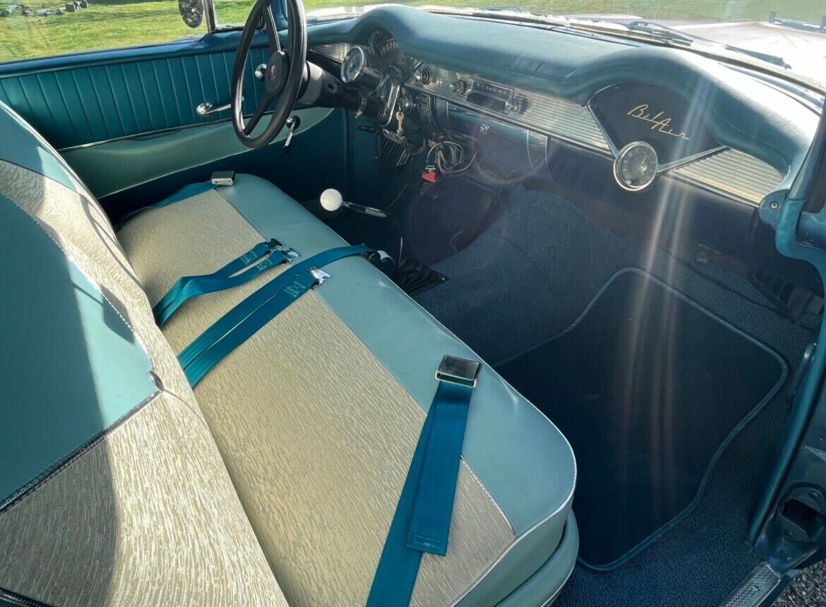 Customizing the drivetrain of a Tri-Five Chevrolet opens a world of possibilities. Still, this seller followed a tried-and-true path that should provide a reliable and low-maintenance motoring experience for the new owner. Lifting the hood reveals a 350ci V8, while the remaining mechanical components include a four-speed M21 manual transmission, a 3.73 Posi rear end, and a front disc brake conversion. The specifications of the small-block are unknown, but it is safe to assume the driver will have more than the 225hp and 270 ft/lbs of torque provided by the 1956 range-topping 265ci V8 at their disposal. The transmission was recently rebuilt, with the seller installing a new clutch as part of that process. They confirm the car never gets hot, and the steering and suspension feel tight. They claim they would confidently drive it anywhere, suggesting the winning bidder could fly in and drive this baby home.