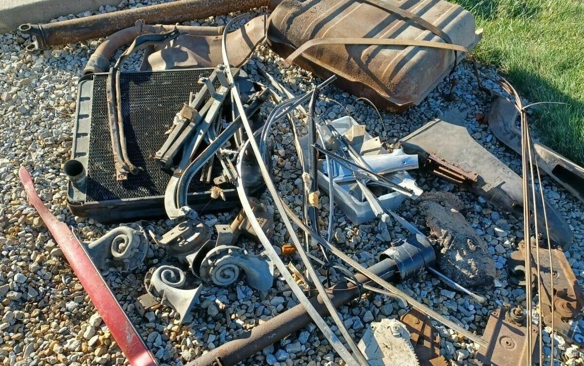 There are quite a few spare parts included with the sale. Along with the small parts seen here, the seller says they have various sheet metal parts including door skins and a right-rear lower quarter skin. Unfortunately, there is no engine or transmission included with the sale.